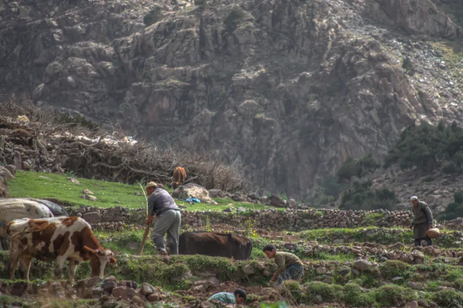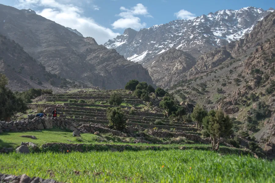 After breakfast, you'll be picked up from your hotel at 7:30 a.m. and driven towards the High Atlas Mountains, passing through Asni, known for its weekly Saturday market. Upon reaching Tagadirt n’Ait Ali, we'll take a rough road uphill to Tizi n’Tacht Pass for stunning views of Imlil and Azzaden valleys. We'll continue to Tizi Oussem village, where we'll start our hike to Azib Tamsoult. The trek takes us through Tizi Oussem and uphill to the remote Tamsoult, offering breathtaking views. We'll have lunch at a refuge, visit a nearby waterfall, and then return via the same route to Tizi Oussem. From there, our vehicle will take us back to Marrakech, dropping you off at your hotel. The trip includes a 5-hour drive (round trip) and a 5 to 6-hour hike.