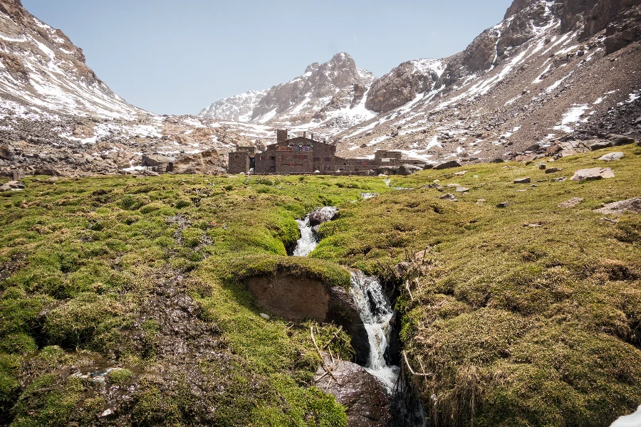 Rise early for the ascent of Mt Toubkal (4,167 m) to enjoy stunning views of the High Atlas mountains and the Sahara desert. Then, embark on a long descent past the refuge and along the familiar path back to Aremd village, where you'll spend the night at a comfortable lodge. Expect a 7 to 8-hour trek.